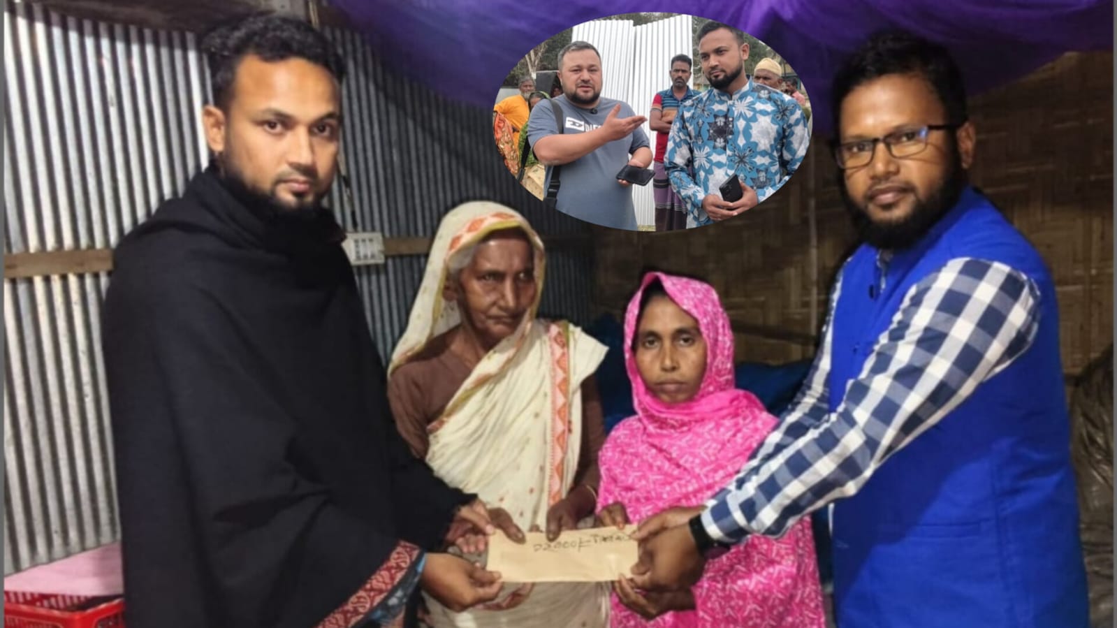 পঞ্চগড়ে ঝড়ে নিঃস্ব বৃদ্ধা, মানবিকতায় এগিয়ে এলেন ছাত্রনেতা শরীফ আহমেদ ও তুর্কি নাগরিক