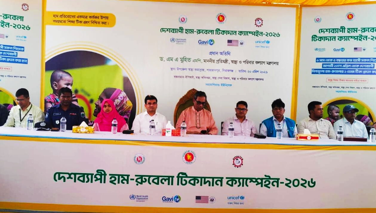 সোমবার (২০ এপ্রিল) সকালে সিরাজগঞ্জের শাহজাদপুর উপজেলা স্বাস্থ্য কমপ্লেক্সে দেশব্যাপী ‘হাম-রুবেলা টিকাদান কর্মসূচি-২০২৬’-এর শুভ উদ্বোধন শেষে সাংবাদিকদের এসব কথা বলেন তিনি।